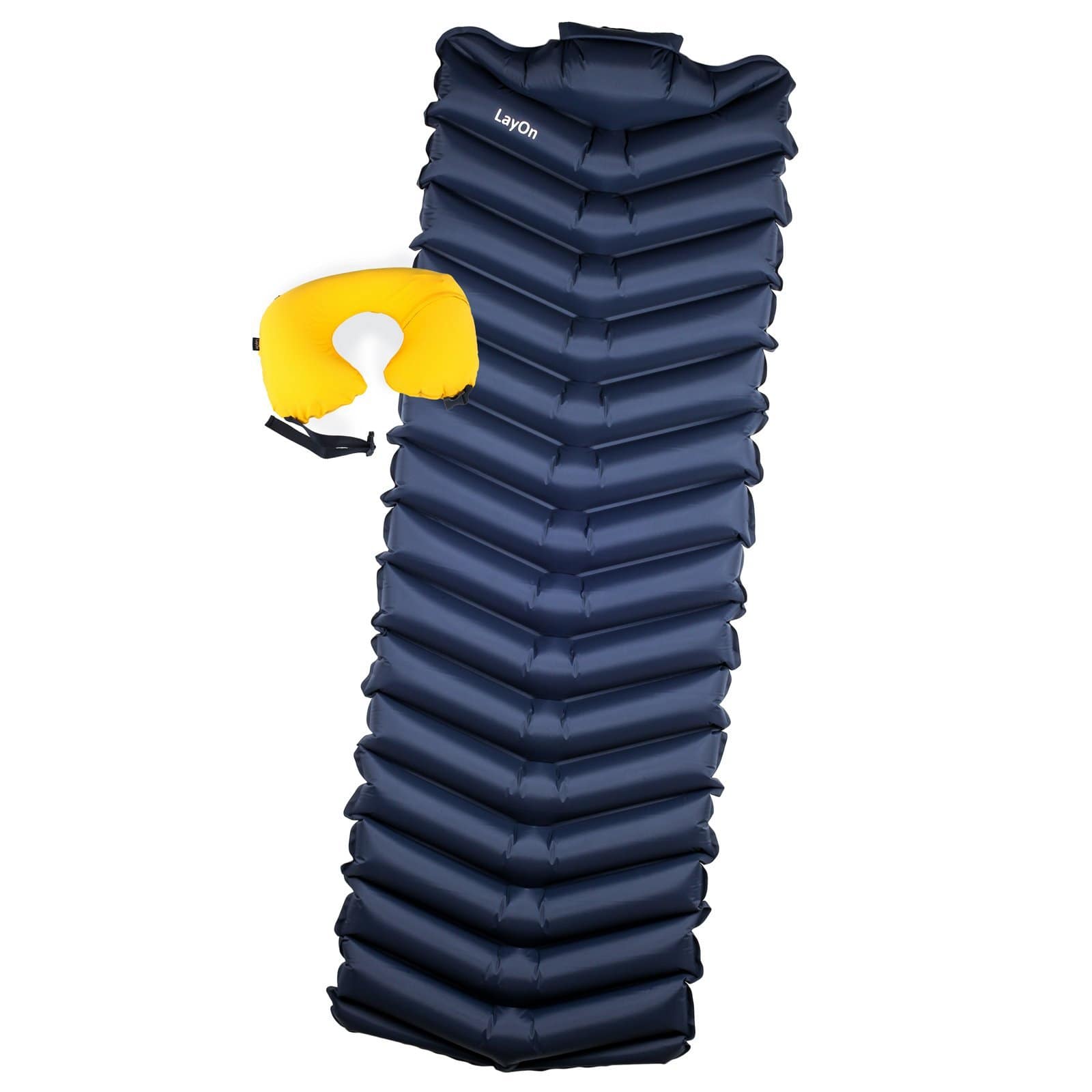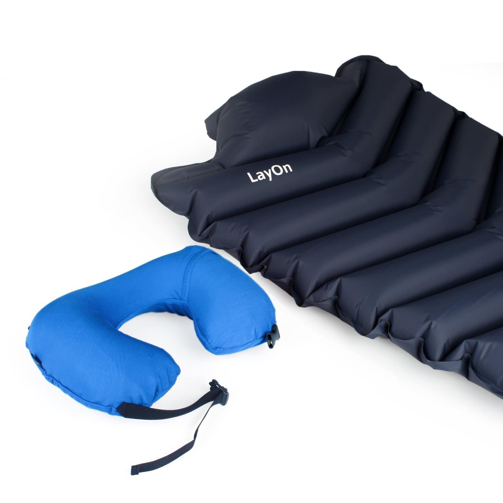 LayOn consente di avere un cuscino da viaggio e un materassino in un unico prodotto + una pompa integrata.
