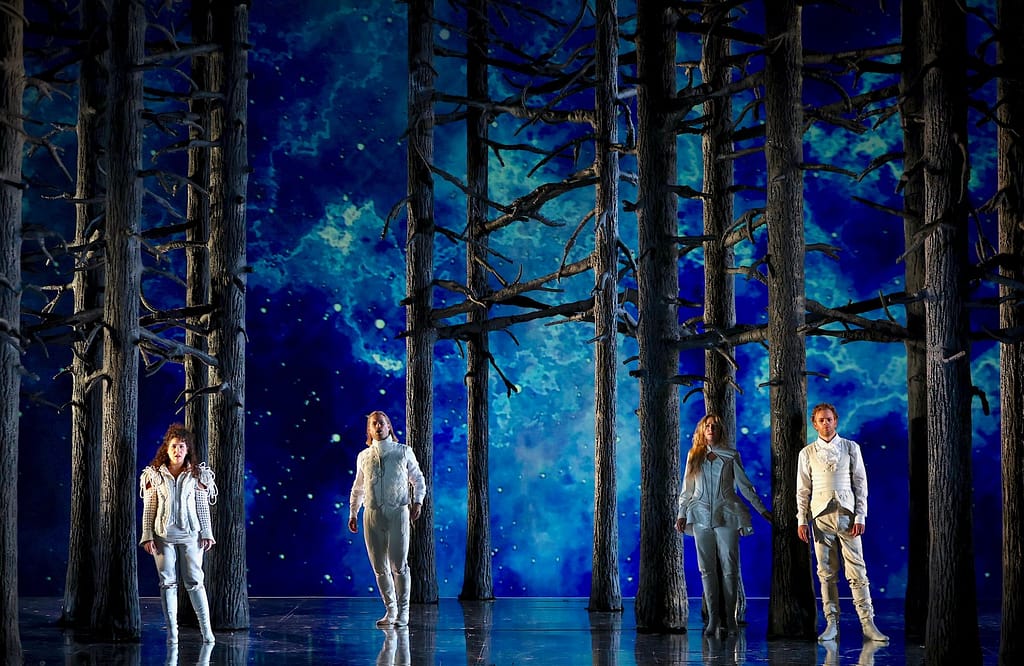 «La musica di Britten richiede un canto virtuoso con la sua complessità, proprio come i ruoli di Shakespeare richiedono una recitazione virtuosa, immaginate quindi la sfida del casting di tali ruoli. Con Pierangelo Conte abbiamo avuto il compito di trovare un cast ottimale per questa produzione. Nel frattempo, con il costumista e scenografo di punta Gary McCann, ci siamo proposti di creare una foresta magica in cui le coppie, amanti o amiche, si perdono, mettendo alla prova l’essenza delle loro relazioni. Abbiamo deciso di tornare a uno stile elisabettiano degli abiti del 1600, ma ci siamo assicurati di non essere prigionieri di quel periodo, creando un mondo fantastico che si tinge del genio contemporaneo di Vivienne Westwood o Alexander McQueen. Volevamo che la foresta fosse spaventosa, proibita ed eternamente mutevole, oltre che mistica. Abbiamo quindi chiesto a John Bishop, con cui abbiamo già collaborato in passato, di ricreare quel misticismo attraverso le luci e di aggiungere i preziosi effetti video del designer Leandro Summe. Trattandosi di un’opera, quindi di una versione musicale, Britten poneva l’accento sull’armonia tra i personaggi e il suo coreografo, John Cranko, ne era il produttore. Qui, il coreografo Carmine De Amicis crea movimenti e danze che riflettono questa armonia delle sfere attraverso la danza».