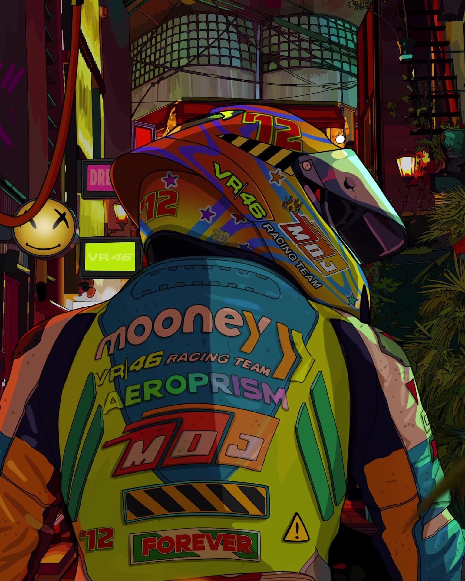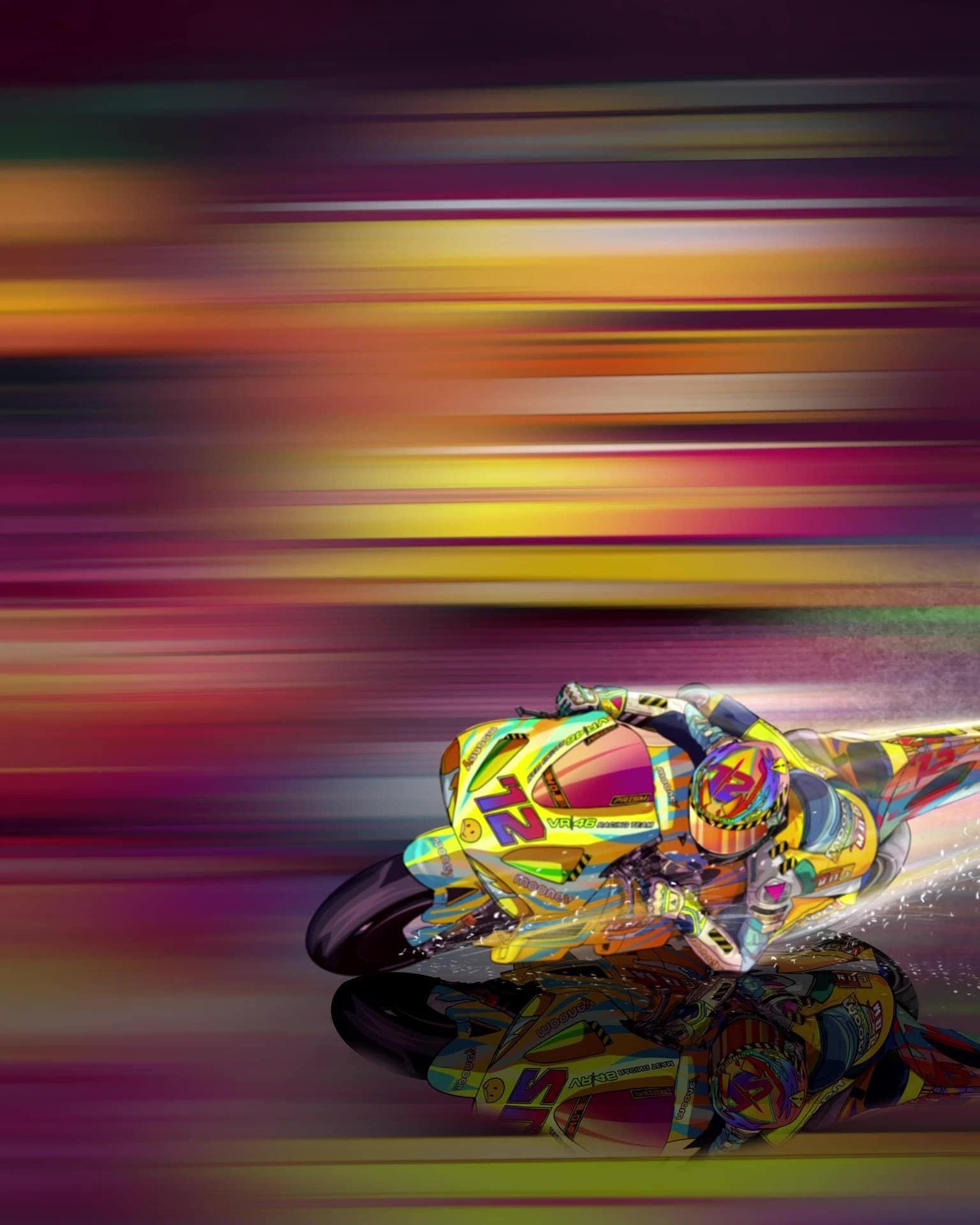 Dall’unione di questi due mondi nasce il progetto AEROPRISM: un tributo agli sport motoristici realizzato dal celebre artista Mad Dog Jones insieme a VR46 Metaverse per Mooney VR46 Racing Team, il team di MotoGP di Valentino Rossi, leggendario 9 volte campione del mondo.