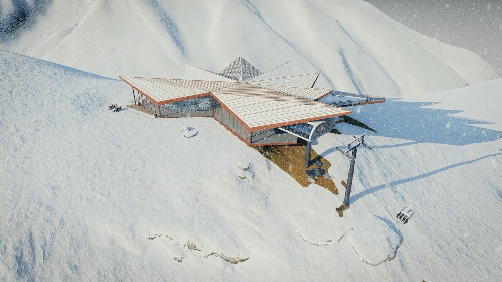 Mentre la stazione di arrivo a monte sulla Cima Couis – motrice – è caratterizzata da un particolare disegno a stella con le punte orientate verso i diversi 4.000 della Valle d’Aosta e conterrà al suo interno anche un bar-ristorante panoramico e servizi per il pubblico.