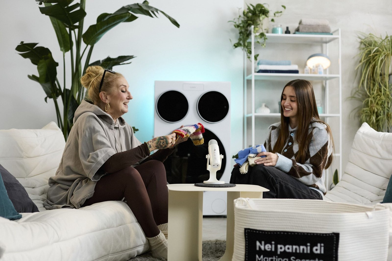 Al centro del set, non solo come elemento scenografico ma come vero statement creativo, c’è MultiWash. La prima lavatrice a tre oblò entra nel format in modo naturale: così come le interviste si articolano in più cicli e livelli narrativi, MultiWash rappresenta un nuovo livello nel mondo del lavaggio domestico. Non un semplice product placement, ma un’integrazione autentica nel racconto.