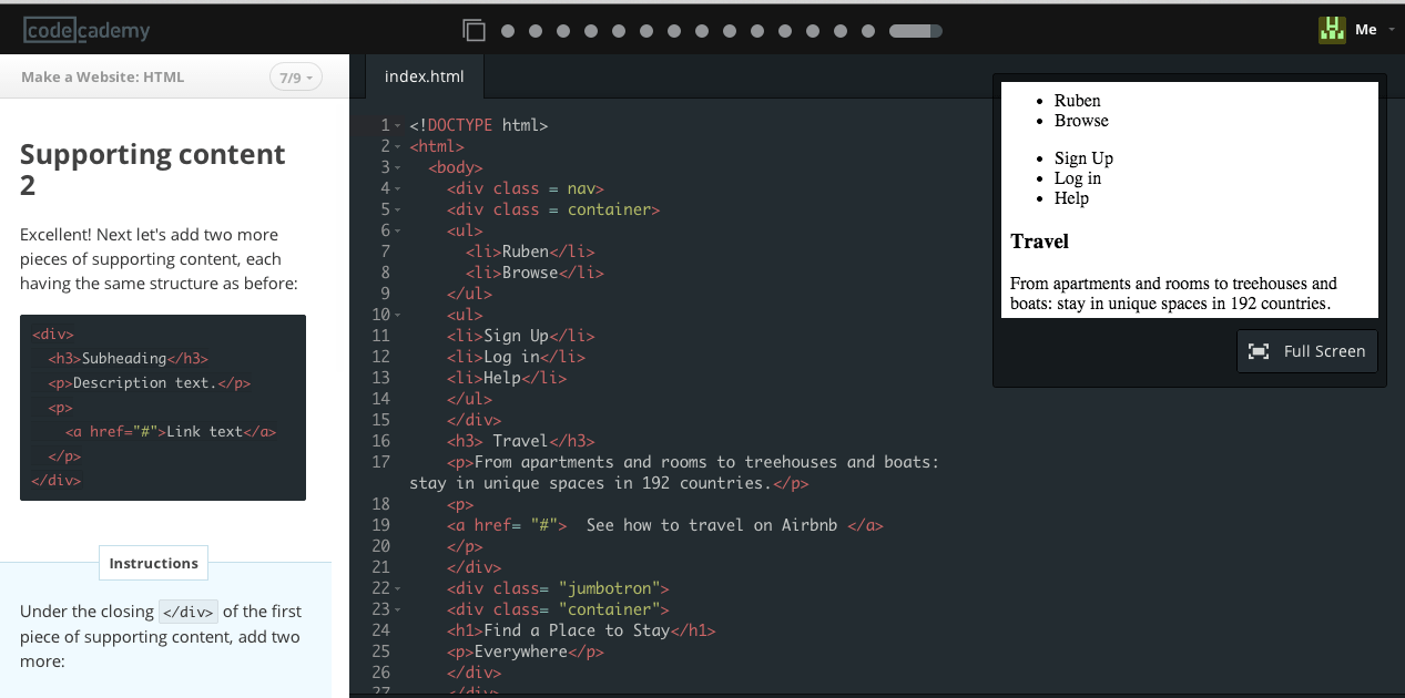 Una volta scelto il corso al quale si vuole partecipare, attraverso un layout semplice e ordinato, l’interfaccia di Code Academy ti guiderà nel processo di apprendimento.