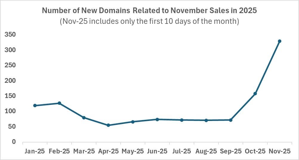 In ottobre sono stati registrati 158 nuovi domini collegati al Black Friday, un aumento del 93% rispetto alla media mensile del 2025.