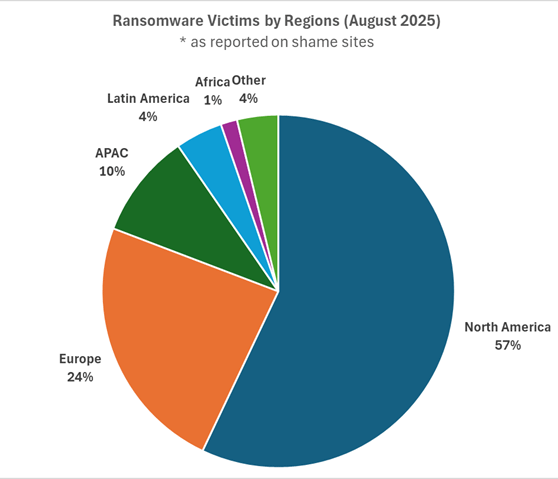 Il ransomware continua a essere un vettore di minaccia estremamente dirompente, con 531 incidenti segnalati pubblicamente a livello globale nel mese di agosto, (+14% su base annua):