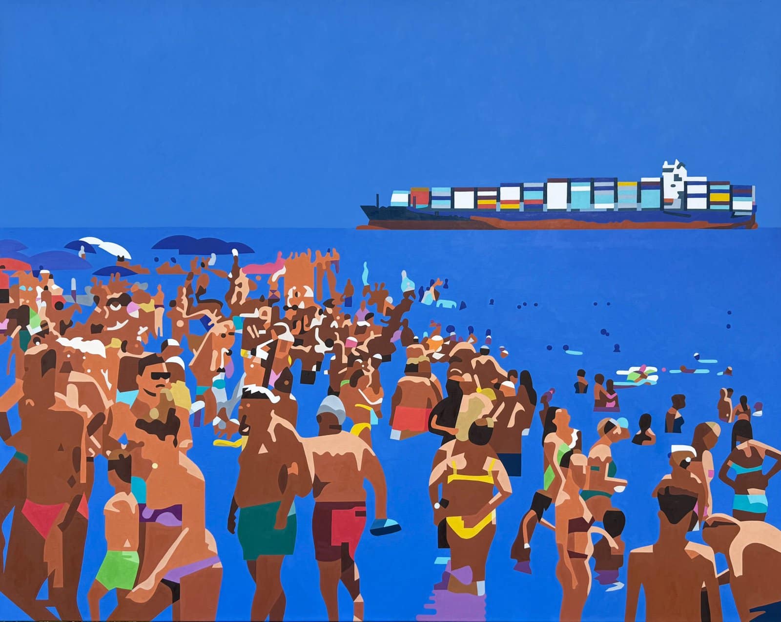 Ispirandosi alle scene mitologiche dipinte sulla volta del Salone d’Onore da Giovanni Battista Castello detto il Bergamasco, Hawke traspone i personaggi del riquadro principale su una spiaggia ligure, mettendo in atto un divertente spostamento di significato e di riferimenti visivi, in omaggio alle molteplici narrazioni e suggestioni che intrecciandosi nel tempo hanno costruito la storia della villa.