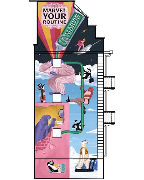 Pura meraviglia espressa attraverso la collaborazione con il talentuoso illustratore Sebastiano Fossali che ha dato un nuovo twist ai gusti deliziosi e al design accattivante di Marvis.