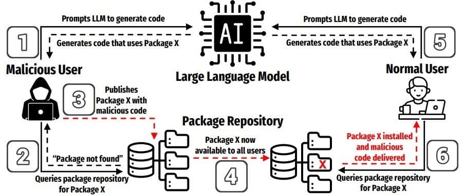 Ogni innovazione porta con sé anche nuovi rischi. Gli assistenti di codifica AI generano occasionalmente le cosiddette “allucinazioni”, ovvero raccomandazioni per pacchetti software che semplicemente non esistono.