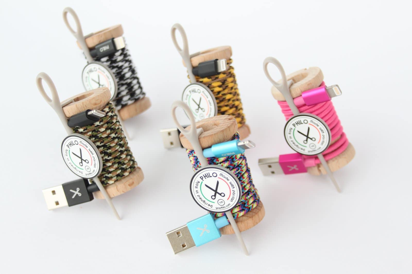 Philo è un cavetto con Connettore Lightning ispirato alla moda e alla sartoria italiana (certificato per collegare e sincronizzare tutti i prodotti Apple di ultima generazione come l’iPhone 6 o iPad Air). Philo è un prodotto tecnologico rivisitato con lo stile, la passione e l’attenzione ai dettagli tipici dell’alta moda italiana da cui prende ispirazione.