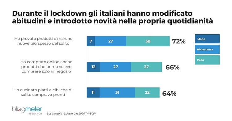 Il lockdown ha portato e continua a portare, dunque, un rinnovamento nelle abitudini dei consumatori del nostro Paese, guidandoli verso una nuova dimensione dei consumi, sia in termini di prodotti e di marche scelti, sia in termini di modalità di acquisto, dai punti vendita fisici agli e-store.