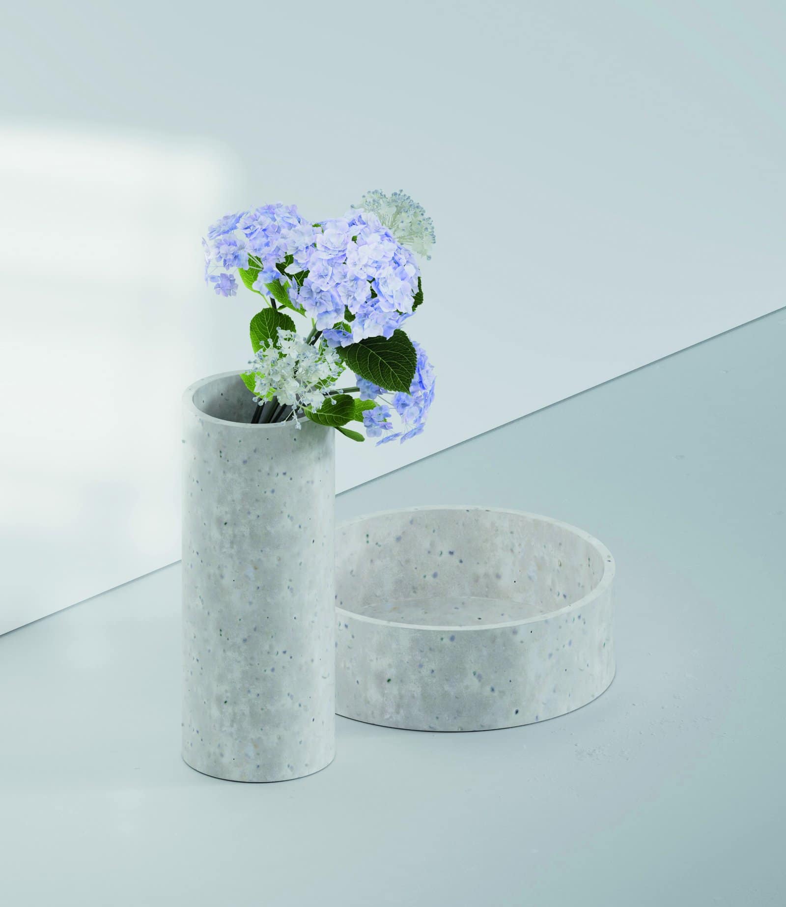 Shoes Marble: vasi a base cementizia con scarti di sneakers realizzati da Cemento Line col designer Francesco Toselli e la startup Sfridoo. Il progetto sarà in mostra a Milano all’ADI Design Museum.