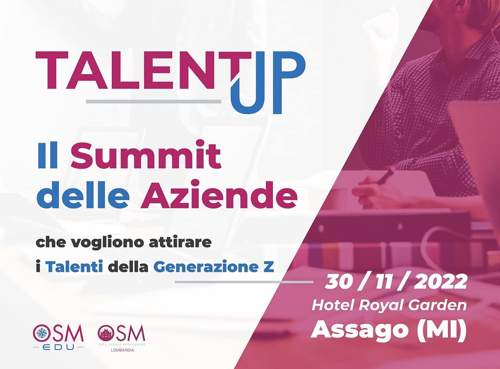 OSM Edu, realtà che si occupa di orientamento e formazione immersiva che connette scuole e imprese italiane, propone la prima edizione di TalentUP, mercoledì 30 novembre dalle 9.30 alle 18.30 presso l’Hotel Royal Garden di Assago, alle porte di Milano.